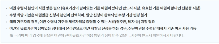 →온라인 신청으로 재발급된 여권수령시 직접 방문 해야합니다.