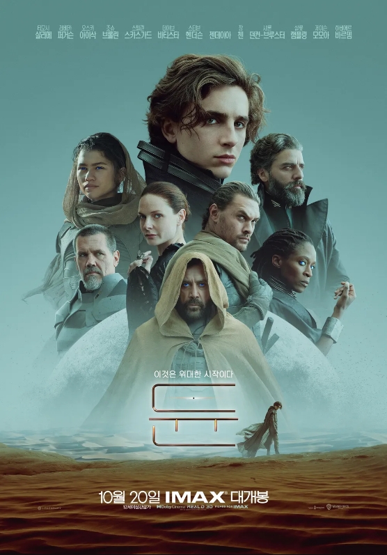 1965년 출간된 프랭크 허버트의 SF판타지소설을 원작으로 하고 있습니다. 이 작품은 SF계의 노벨상이라고 불리는 '휴고상 최우수 작품상' 수상작입니다. 총 6부로 되어있는 듄 전집은 사막 행성 '아리키스'를 배경으로 인종과 종교, 철학과 역사등을 모두 담고 있는 대하 SF영화입니다. '듄'은 탄탄한 세계관이자 엄청난 스토리를 내포하고 있으며 이 소설은 단순한 소설로서의 가치뿐만 아니라 역사상 가장 많이 팔린 SF이자 독자들이 뽑은 역대 최고의 SF소설이기도 합니다.'듄'은 모래언덕이라는 의미로 작은 알갱이 속에 감춰져 있는 세계가 드러나고 작품 속에서 폴의 꿈이 실체가 밝혀지면서 갈등의 시작을 드려내는 작은 키워드로 쓰이기도 합니다. 이 작품은 많은 감독들이 1974년부터 영화제작을 시도하였으나 원작자체가 엄청난 작품이었기에 영화로 구현해 내기가 쉽지 않았다고 합니다. 이러한 작품을 SF판타지의 거장 드니 빌뇌브 감독은 두 편의 영화로 완성하여 장엄하고 방대한 이야기를 구현해 내 많은 갈채와 박수를 받았습니다. 더불어 영화음악의 거장으로 우리에게 너무 잘 알려진 한스 짐머가 음악을 맡아 완성도를 높였습니다. 거기에 현재 대체 불가능한 배우로 칭송받으며 지구상에서 제일 핫하다고 알려진 티모시 살라메가 주연을 맡았으니 이 작품이 흥행을 안 한다는 건 말도 안 되는 일이겠지요? 인류 최대의 전쟁을 그린 영화를 추천해 드립니다.